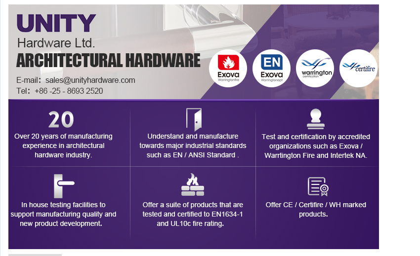 and certified to EN1634-1 and UL10c fire rating. We also offers CE/ Certifire marked products that are